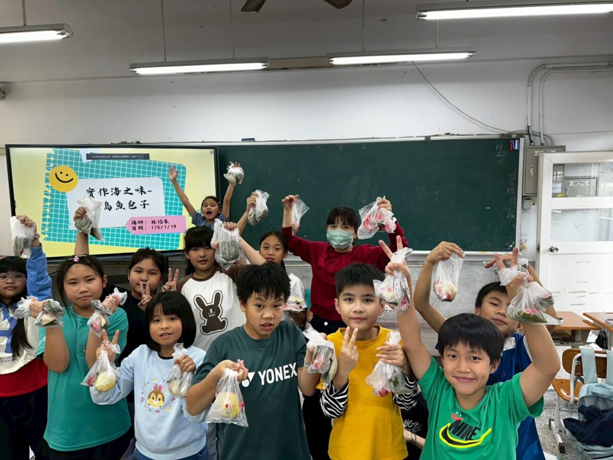 本次課程以綠島在地飲食文化為主軸,引導學生從熟悉的祭祀點心出發,認識家鄉特有的「魚包子」。課程中介紹綠島早期因環境限制而「就地取材」的生活智慧,並帶領學生辨識「圓仔」與「包子」的民俗差異,理解其背後的文化脈絡。活動也介紹章魚乾、旗魚乾等海洋食材,使學生了解家鄉味與海洋資源的密切關係。最後透過學習單進行反思,強化海洋資源永續與文化傳承的重要性。