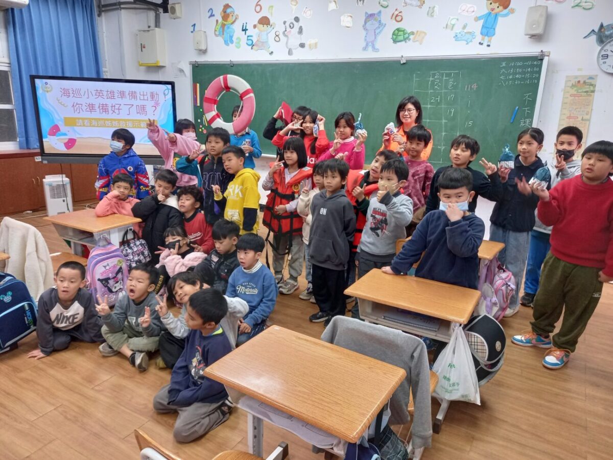 海巡署蒞臨校園,推廣海洋水域安全與防災知識,並讓學生進行闖關體驗活動,以提升師生防範水域災害的意識與能力。